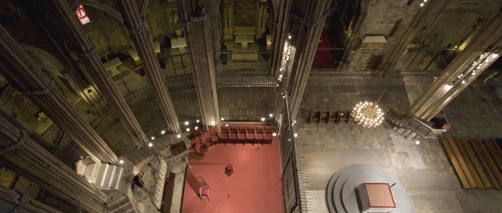 The church has the widest gothic nave in the world, almost 23 m. It is 35 meters high and was built between the 14th and the end of the 16th century. It has four rafts with their big keystones. At the lower level there are several chapels, and above is the stained glass level. A magnificent episcopal seat of white marble of the Pyrenees behind the main altar of the cathedral is a must-see. Originally Romanesque, rebuilt in the Gothic period, this venerable seat is called “Charlemagne’s chair”. According to legend, every couple who sits there together will be married in the year, and any man who sits there alone is bound to remain single. The altarpiece of the high altar in embossed silver of the 14th century, overlaid with enamels and precious stones, is one of the jewels of the Spanish goldsmith. The religious architectural has the widest gothic ship in the world – about 23 meters – and basically meets the Romanesque and Gothic styles, with also baroque and contemporary elements.
