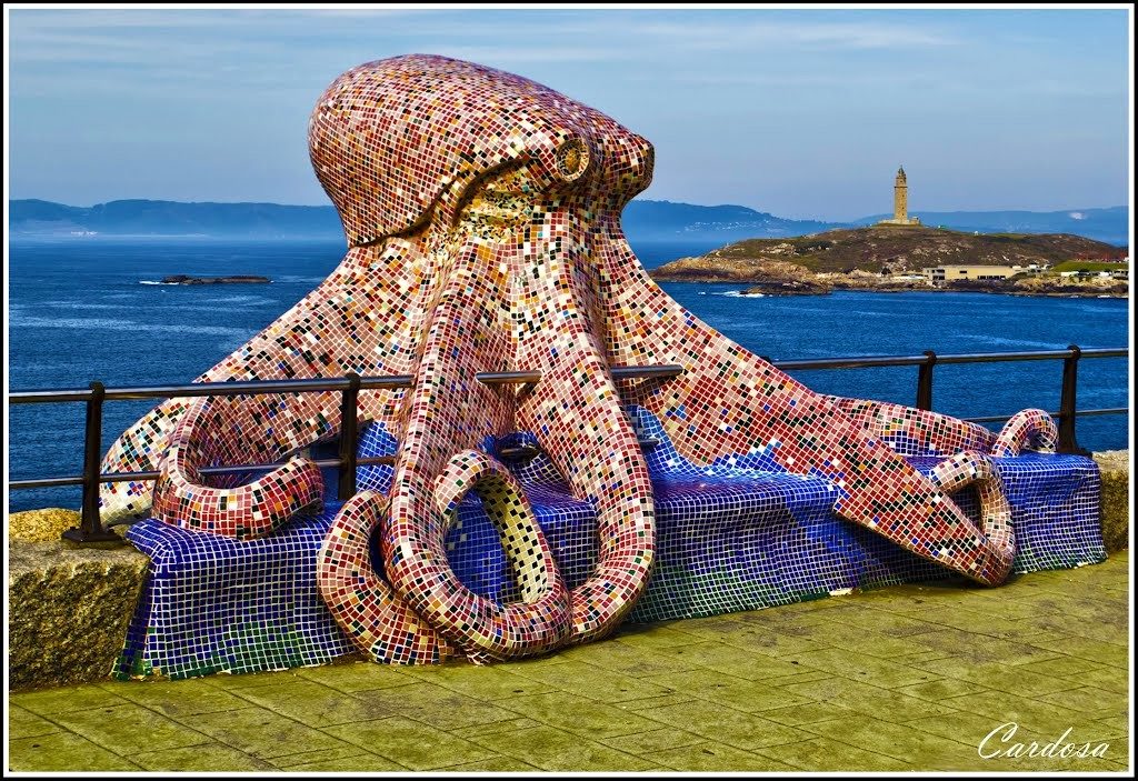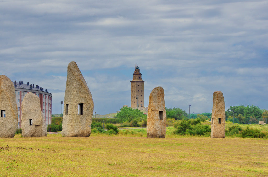 The sun sinks gradually into the Atlantic Finisterrae and its dream landscape. Opposite is the only Roman lighthouse in the world still in operation, accompanied by a sculpture park Artabres, Arturo Andrade; Breogán, of Xosé Cid; Charon, of Ramón Conde; Hercules and Géryon, Tim Behrens and José Espora; as well as the menhirs forest of Manolo Paz.