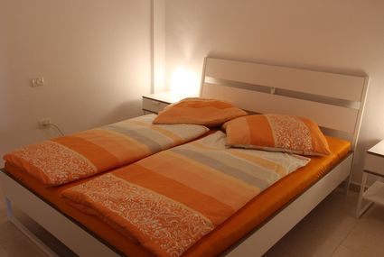 Living/dining room with satellite TV, dining-table and dinette. Smoking not allowed. Internet (Wireless LAN [WLAN]). Sleeping room with 2 single beds. Sleeping room with 1 double bed. Sleeping room with 1 double bed. Open kitchen with 4 hot plates, micro wave, oven, dining table, dinette, fridge and deep freezer. Shower/WC. Balcony 12 m2, terrace furniture, 1 deck chair. Other equipment: children's high chair, hair dryer, iron, washing machine.