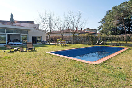 Modern, beautiful house "Natural House", 2 storeys. Outside the resort, 1 km from the centre of Sant Esteve de Palautordera, in a quiet position residential area (villas), 500 m from the edge of the forest. Private: property (fenced), garden with lawn, swimming pool (10 x 4 m, depth 120 - 250 cm, 13.04.-30.10.). Single garage. Nearby attractions: Parque Natural del Montseny 9 km, Barcelona 59 km, Girona 61 km, Roca Village 25 km. Groups of teenagers on request only. Neighbourhood highly sensitive to noise. Quietness and good behaviour expected.Availability