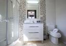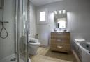 - bathroom with single washbasin, bath/shower combination, shower and toilet