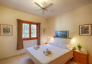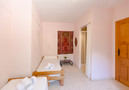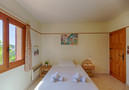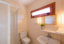 Going down a flight of stairs we reach the private pool area with sun loungers and parasol and a toilet that serves the pool area.