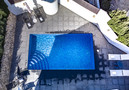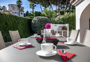 To access the main floor of the villa you have to go up a flight of stairs to one of the terraces of the villa with garden sofas to relax outside, a table for 6 people and a built-in barbecue. The swimming pool is accessible without stairs and measures 7/4 metres. It is located in front of the living room and one of the main rooms, and has a sunbathing area and an outdoor shower. The villa also has a solarium with beautiful garden furniture for relaxing with beautiful sea views.