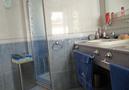 - bathroom with single washbasin, shower and toilet