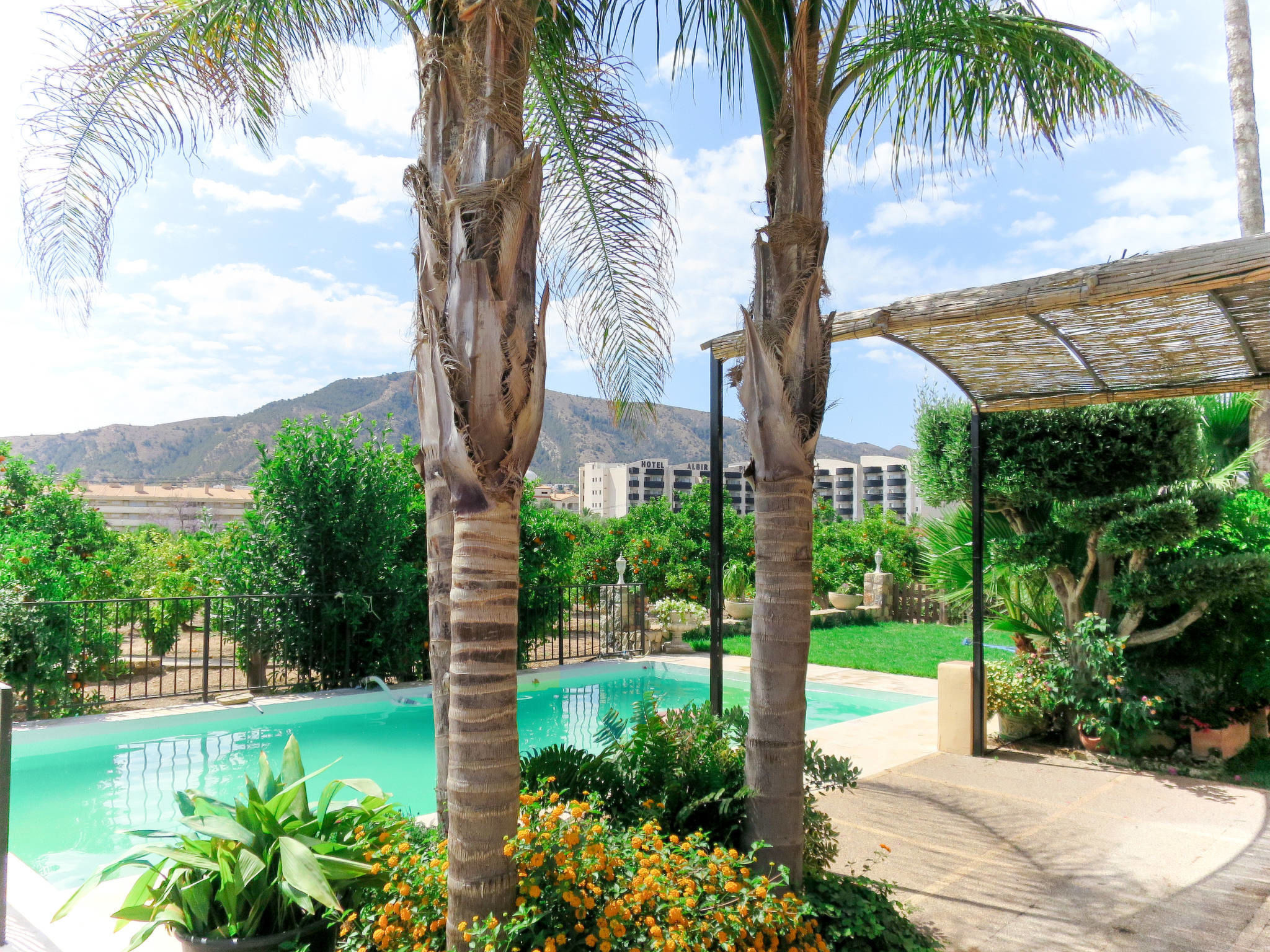 House "Angeleta". 4.5 km from the centre of Altea, 500 m from the centre of Albir, 54 km from the centre of Denia, 1 km from the sea. Private: property 1'500 m2 (fenced) with lawn and trees, orchard, swimming pool (8 x 4 m, depth 90 - 130 cm, seasonal availability: 01.Jan.-31.Dec.). Parking on the premises. Supermarket 750 m, restaurant 800 m, pebble beach 1 km. The owner does not accept any youth groups.Availability