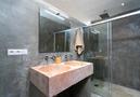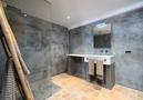 - en-suite bathroom with double washbasin, shower and toilet cistern