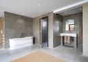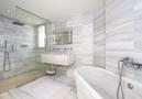 - en-suite bathroom with double washbasin, bathtub, shower and toilet cistern