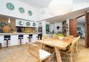 - Open plan kitchen with electric stove, fridge, coffee maker, water heater and toaster