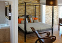 Beautiful and stylish furnishings: living/dining room with open-hearth fireplace, dining table, satellite TV, DVD, electric heater and fan. Exit to the terrace. 1 room with 1 french bed (150 cm, length 200 cm), air conditioning. 1 room with 1 french bed (150 cm, length 190 cm), air conditioning. 1 room with 1 french bed (180 cm, length 200 cm), air conditioning. Open kitchen (oven, dishwasher, 5 gas rings, toaster, microwave, electric coffee machine). Exit to the terrace. Bathroom, shower/WC. Heating. Upper floor: 1 room with 1 french bed (160 cm, length 200 cm), shower/WC, double hand-basin and air conditioning. Exit to the terrace. 2 terraces partly covered. Terrace furniture, barbecue, deck chairs (6). Facilities: washing machine. Internet (WiFi, free). Please note: non-smokers only. When there are less than the maximum number of guests staying at the property, the annex will not be available for use.