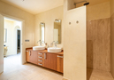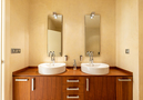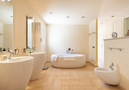 - bathroom with double washbasin, bath, shower, bidet and toilet