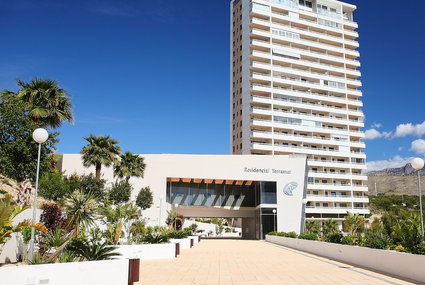Playa Poniente: Very large, modern apartment block "Terramar", 20 storeys. In the resort 2 km from the centre of Benidorm, in a quiet, sunny position, 900 m from the sea, 900 m from the beach, on the golf course. For shared use: property (fenced), beautiful terraced garden with lawn, swimming pool (15.06.-15.09.). Children's pool, outdoor shower. In the complex: lift. Public parking on the road. Supermarket 1.5 km, restaurant, bar 300 m, bus stop "Benidorm" 500 m, railway station "Benidorm" 3 km. Golf course (9 hole) 200 m, walking paths from the house 1.1 km. Nearby attractions: Terra Mitica 3 km, Terra Natura 3 km, Aqualandia 6 km, Mundomar 6 km, Benidorm Palace 6 km, Alicante 40 km.