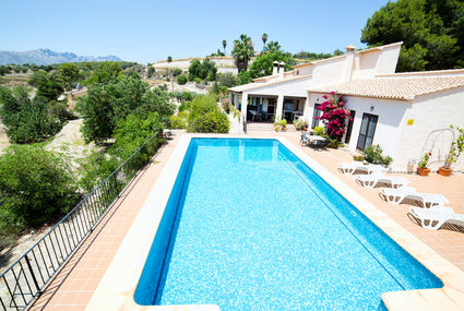 Benimarraig 10 km from calpe: Rustic, comfortable villa "La Finca", 2 storeys, surrounded by trees, fields and vineyards. In the district Benimmaraig, 7.2 km from the sea, 7.2 km from the beach, in the countryside. Private: property, swimming pool (12 x 6 m, 01.01.-31.12.) with internal staircase. Shower/WC in the pool area, garden furniture, barbecue. In the house: washing machine. Parking. Shop 6.6 km, grocery 6.6 km, supermarket 6.6 km, restaurant 1 km, café 5 km, pub garden 1 km, sandy beach "Playa Arenal" 7.2 km. Sports harbour 8.8 km, marina 8.8 km, surf school 8.8 km, sailing school 8.8 km. Nearby attractions: Peñon de Ifach, Sierra Bernia, Fonts de L'algar, Guadalest. Please note: car recommended. Suitable for families.Availability