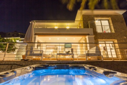 LAYOUT: This newly built 220 m2 villa is spread over two floors and connected by an internal staircase. On the top floor, where the entrance to the house is, we have two double bedrooms with en suite bathrooms (one with a bath tub and one with a shower). We also have a terrace with stunning views over the Mediterranean Sea. On the main floor there is another double bedroom with an en suite shower room. It has a light and airy space composed of a fully equipped modern kitchen, dining room, guest bathroom and a large comfortable living area with a large TV. There are televisions in two of the bedrooms, living and dining room. OUTSIDE: The house is built on an enclosed 750 m2 plot wich can be accessed through an automatic swing door, there is enough space to park the cars. There is a curious and nice pool wich overflows on large white stones. By the pool there are sunbeds and a covered barbecue area. There is also a solarium with a modern outdoor sofa, where you can have a refreshing drink while enjoying the views offered by this wonderful villa. It has a covered terrace and TV, wich makes eating sheltered from the intense summer sun possible and last but not least a jacuzzi located on a lower level of the terrace. LOCATION: Located in a residential area of Benissa, near a famous view point with an exceptional scenery. A 10min drive from the coast and beaches of Calpe. OTHER : INTERNET WIFI, JACUZZI .