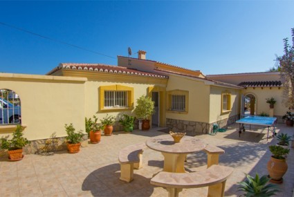 Up to 8 people and few minutes to a clear water creek and 3 kms to Moraira. This luxury villa very nicely decorated has 4 large bedrooms, 3 of them with bath en-suite, 2 living rooms, a living-dining room, nice kitchen and a wonderful terrace with a totally fitted outside kitchen to enjoy the pool and typical mediterranean nights. Place to park several cars. ENJOY ITS FITNESS ROOM, Wii console, TENNIS TABLE AND INTERNET-WIFI ACCESS.