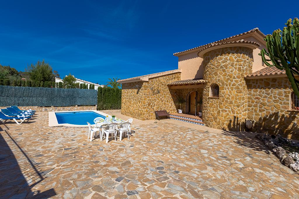Large and comfortable villa with private pool in Benissa, Spain for 8 persons, for your summer holidays on the Costa Blanca with family, friends and also your pets. The villa is situated at 2 km from La Fustera beach and at 4 km from Calpe-Moraira.