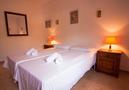 Going down some external stairs we reach the lower floor where we find a study with a small living room with air conditioning, a small auxiliary fridge and microwave, tv and sofa. A bathroom with a shower, a room with a double bed and a fifth room with two single beds pushed together.