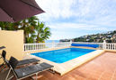 Cumbre del Sol: Beautiful villa "Rioja", 2 storeys. In the resort 8.9 km from the centre of Moraira, 12.8 km from the centre of Javea, in a quiet, sunny position on top of a hill, residential area (villas), traffic calmed area, 1.3 km from the sea, 1.3 km from the beach, in a cul-de-sac. Private: property 1'200 m2 (fenced), swimming pool (8 x 4 m, seasonal availability: 01.Jan. - 31.Dec.). Outdoor shower. In the house: washing machine. Grocery 1.3 km, supermarket 1.3 km, restaurant 1.2 km, bar 1.2 km, shingle beach "Cala Moraig" 1.3 km. Sports harbour 9.4 km, marina 9.4 km, golf course 12 km. Nearby attractions: Aqualandia, Mundomar, Terra Mítica, Terra Natura, Benidorm Palace (Benidorm), Castillo de Guadalest, Les Fonts de l'Algar.Availability
