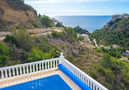 Cumbre del Sol: Beautiful villa "Rioja", 2 storeys. In the resort 8.9 km from the centre of Moraira, 12.8 km from the centre of Javea, in a quiet, sunny position on top of a hill, residential area (villas), traffic calmed area, 1.3 km from the sea, 1.3 km from the beach, in a cul-de-sac. Private: property 1'200 m2 (fenced), swimming pool (8 x 4 m, seasonal availability: 01.Jan. - 31.Dec.). Outdoor shower. In the house: washing machine. Grocery 1.3 km, supermarket 1.3 km, restaurant 1.2 km, bar 1.2 km, shingle beach "Cala Moraig" 1.3 km. Sports harbour 9.4 km, marina 9.4 km, golf course 12 km. Nearby attractions: Aqualandia, Mundomar, Terra Mítica, Terra Natura, Benidorm Palace (Benidorm), Castillo de Guadalest, Les Fonts de l'Algar.