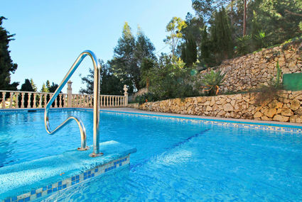 House "Richelieu". In the district of Maryvilla 4 km from the centre of Calpe, 66 km from the centre of Alicante, 125 km from the centre of Valencia, 2 km from the beach. Private: property 1'200 m2 (fenced) with wildlife garden and trees, swimming pool (8 x 4 m, seasonal availability: 01.Jun. - 30.Sep.). Outdoor shower, barbecue, parking (for 3 cars) on the premises. Shop 3 km, supermarket 4 km, sandy beach "Puerto Blanco" 2 km (small). Nearby attractions: Terra Mítica 35 km, Aqualandia 25 km, Benidorm Palace 25 km. Hiking paths: Peñon de Ifach 7 km. The owner does not accept any youth groups. Please note: 1st floor is closed and not occupied.Availability