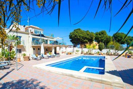 La Calalga: Beautiful, comfortable villa "Mar y Monte", 3 storeys. In the resort 4 km from the centre of Calpe, in a quiet, sunny position residential area (villas), area with little traffic, 300 m from the sea, 300 m from the beach. Private: property (fenced), beautiful, well-kept garden, swimming pool (13 x 5 m2, 01.01.-31.12.). WC in the pool area, barbecue house. In the house: WiFi, washing machine. Parking on the premises. Supermarket 900 m, restaurant, bar, café 550 m, sandy beach "Playa de la Fosa" 550 m. Sports harbour 1.5 km, golf course 10 km. Nearby attractions: Aqualandia, Mundomar, Terra Mítica, Terra Natura, Benidorm Palace (Benidorm), Les Fonts de l'Algar, Castillo de Guadalest. Groups of teenagers on request only.