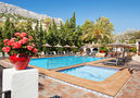 Situation: exclusive residential area Maryvilla. Access/parking: parking in the holiday complex. Estate (shared use): approx. 10000 m², park-like, lawn, palm trees. Pool (shared use): 12.0 x 5.0 m, open all year, open from 9:00-AM-8:00-PM h, children's pool. Pool area: tiled, deck chairs (depending on availability). Sports facilities/ leisure time: shared use (free of charge): tennis. shared use (free of charge): children's playing equipment. shared use (free of charge): billiards. shared use (free of charge): table football. Infrastructure: reception service several hours only; washing machine (coin-operated). Payment: safe for rent, TV for rent. Restaurant; Bar/café. Exterior (private use): Plot description: courtyard, furnishing provided, 2 sun loungers. ● Distances: Center Calpe in approx. 3 km. Next shopping possibility in approx. 3 km. Harbour/marina in approx. 1.5 km (Puerto Blanco). Sea in approx. 1.5 km. Sandy beach in approx. 3 km. Pebble beach in approx. 1.5 km (Playa Puerto Blanco).