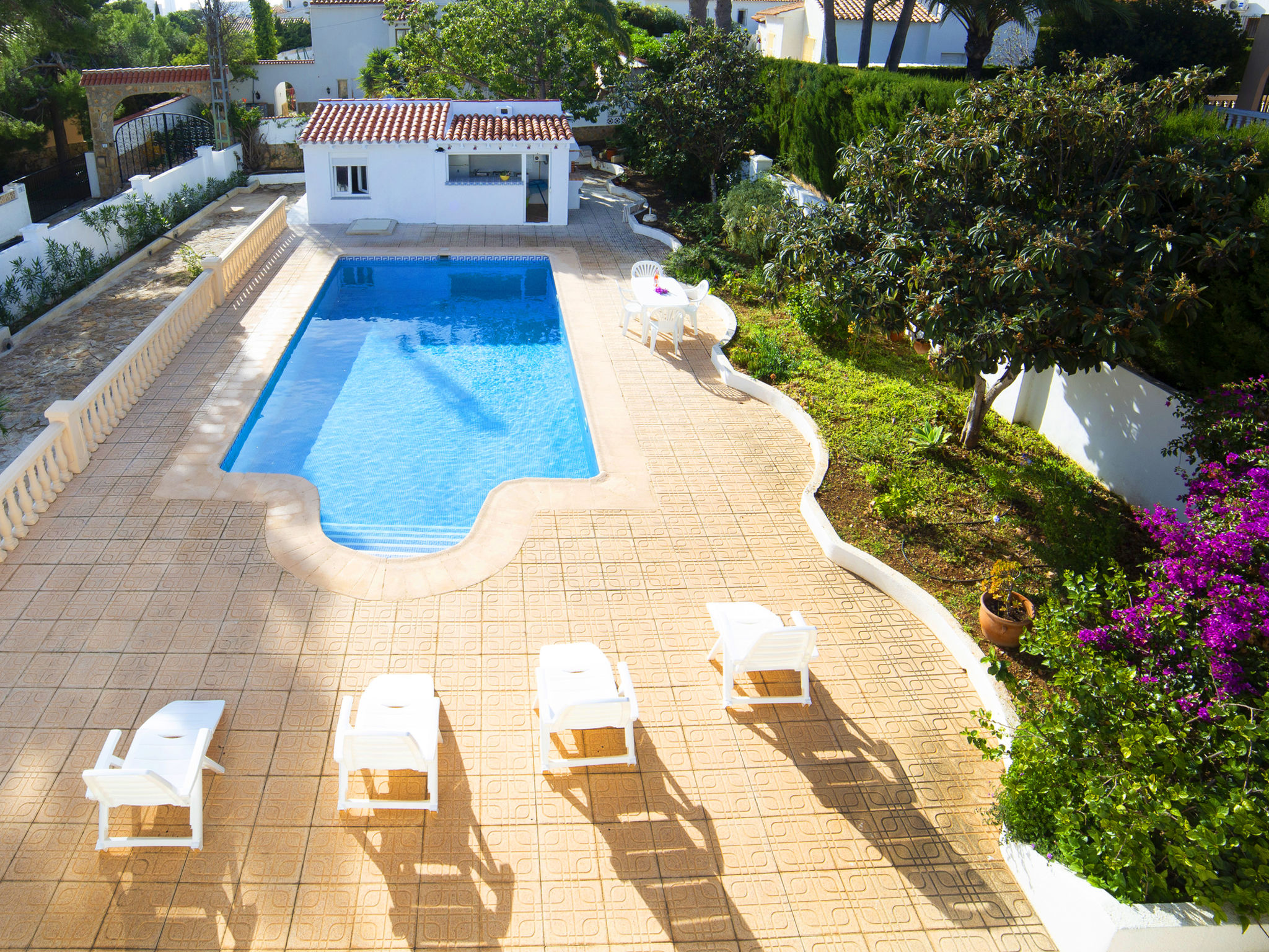 49 Carrio: Single-family house "Watsi", renovated in 2018. 1.5 km from the sea, in a cul-de-sac. Private: property 770 m2 (fenced), swimming pool (4 x 8 m, 01.01.-31.12.). Pool house with fridge, shower, WC and cooking stove, garden furniture, barbecue. In the house: WiFi, washing machine. Parking (for 2 cars). Shop 2 km, supermarket 2 km, restaurant 1 km, bar 1 km, sandy beach 2 km. Nearby attractions: Peñon de IFACH (Calpe) 4.6 km, Aqualandia, Mundomar, Terra Mitica, Terra Natura, Benidorm Palace en Benidorm.Availability