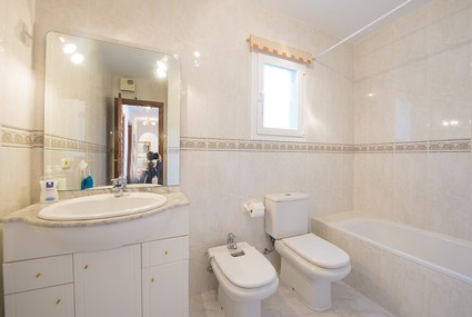 INTERNAL: This pleasant villa consists of the GROUND FLOOR, which consists of a living-dining room with SAT TV/TDT and access to the terrace and the pool area. A separate fully equipped kitchen with gas stove and dishwasher. Two bedrooms, one with a single bed and the other with two single beds, both with ceiling fan. A bedroom with a double bed with sea view, ceiling fan, dressing room and a bathroom with shower en suite. In addition, there is a bathroom with a bathtub. The upper floor has two bedrooms, one with double bed, ceiling fan and sea view and the other with double bed, air conditioning, a bathroom with bath en suite and access to a balcony with spectacular sea views.