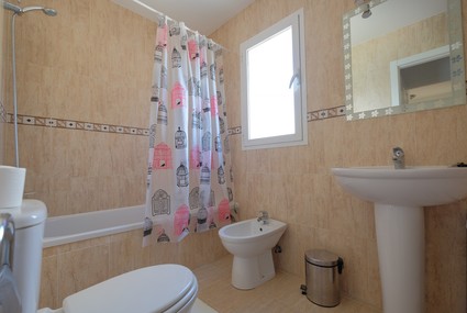 INTERNAL: The apartment consists of a fully equipped independent kitchen with vitroceramic, a large living room with TV (TDT/Sat) and access to the terrace, there is one bedroom with double bed and bathroom with bathtub en suite and one bedroom with two single beds. It also has another bathroom with bathtub.