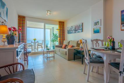 Accommodation of 65 m², cosy outside, and very sunny. The apartment has a living room with a sofa bed for two guests, air conditioning, a complete kitchenette with washing machine and dishwasher. A bedroom with two single beds together, air conditioning and exit to the terrace from the bedroom. A complete bathroom with bathtub and a beautiful glassed-in terrace with dining table, a fan and ceiling, sun beds and panoramic views, unbeatable to the sea.