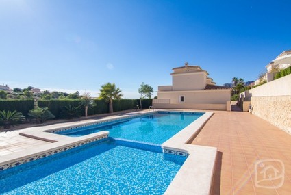 NICE VILLA FOR RENT WITH PRIVATE SWIMMING POOL IN CALPE (COSTA BLANCA) for up to 6 people... This house has 2 floors with interior stairs. MAIN FLOOR: modern living - dining room with TV, sat, and music equipment. Separate fully fitted kitchen with small American bar. 2 bedrooms (1 double bed and 2 singles), and a bathroom with shower. The 1st floor has 1 bedroom with double bed, en suite bathroom, nice terrace with open view. This house has air conditioning in every bedroom and in the living room. Covered terrace with garden furnitures and BBQ. There is also a community pool and a pool for kids. Parking available in the urbanisation. The nearest beach is the playa de la Fustera at only 1500 mts or the largest beach of Levante at 2 kms.