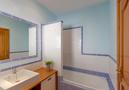 Going down the spiral stairs in the living room, we find a bedroom with two single beds pushed together and air conditioning. A third bedroom with a double bed, and a bathroom with a shower. The whole house has central heating and free internet access (wifi).
