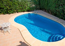 La Cometa: Cosy, simple house "Mara". 2.5 km from the centre of Calpe, in a quiet position, 1.9 km from the sea. Private: property 500 m2 (fenced), garden, swimming pool (8 x 4 m, depth 110 - 200 cm, seasonal availability: 01.Jan. - 31.Dec.). Outdoor shower, terrace, garden furniture, barbecue. Supermarket 1.4 km, restaurant, bar 700 m, sandy beach 1.9 km. Tennis 2.2 km. Nearby attractions: Aqualandia, Mundomar, Terra Mítica, Terra Natura, y Benidorm Palace (Benidorm).Availability