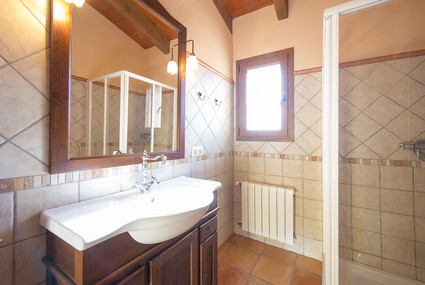 Upstairs, there are two bedrooms with double beds and a bedroom with two single beds. In addition, there is a bathroom with a bathtub and another bathroom with a shower on this floor.