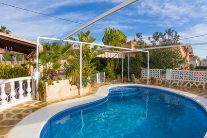 LAYOUT: This is a two floor villa, although only the upper floor is open for rentals.There is three bedrooms (two with double beds and one with bunk beds) and two bathrooms (one en suite with shower and one separate bathroom). We have a beautiful fully equipped kitchen. It has a spacious living room from which we can access to the covered terrace and the garden. OUTSIDE: There is a covered furnished terrace on w ich to enjoy your meals. It has two barbecues, a portable gas one and a charcoal one. It has a fenced pool so it can not be accessed by children and animals. The plot has two entrances, one with covered parking and one open car park. LOCATION: Situated in an excellent location, just steps from the sea, the beach and all amenities. Quiet and well located, perfect for our vacation. Near the sandy beach of La Fosa where you can find many restaurants and bars.