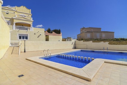 Beautiful holiday bungalow with communal pool in Calpe (Costa Blanca) for 8 people, with four bedrooms and two bathrooms on two floors.