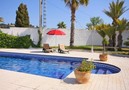 Villa with pivate pool and nice garden with lawn at the coast of Benissa for 8 people. This villa is situated in the area La Fustera, quiet living zone close to the sandy beach and all the services. It has a large pool and the lawn area invites to relax. This villa has a living-area of 160 m² arranged on 2 floors and a enclosed plot of 800 m². Main floor: (access by 5-6 steps) on this floor there are 2 covered terraces, a large living-dining room with sat-tv/tdt (no plasmascreen), air conditioner and access to the terraces and the pool area. Separate kitchen, completely equipped with ceramic hob, refrigerator with freezer, dishwasher, oven, microwave, coffee machine, toaster and other utensils for the kitchen. 1 bedroom with double bed, 1 bathroom with shower, wc and washbasin, 1 bedroom with double bed. Upper floor: (access by internal staircase). On this floor there is a studio (with access from the bathroom), large bedroom with double bed and access to the solarium with nice seaviews. Living-dining room with tv, air conditioner and access to the solarium with seaviews, there is a sofabed for 2 people. Open kitchen with ceramic hob, oven, a small refrigerator with freezer and dishwasher. 1 bathroom with bath, wc and washbasin. External: large pool of 11x4 m with built-in stairs and external shower, area with lawn. 4 sun loungers, gas- bbq. Parking for 2-3 cars on the plot. 1 utilityroom with washing machine. Only 1,9 km from the next sandy beach “La Fustera”, the supermarket and restaurants, 4,5 km from the sandbeach Levante with promenade in Calpe and 7 km to the town centre Calpe.