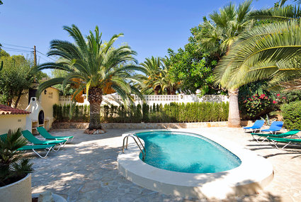 La Fustera: House "Ursula". 4.5 km from the centre of Calpe, in a quiet, sunny position residential area (villas), 600 m from the sea. Private: property 750 m2 (fenced), swimming pool kidney shaped (8 x 4 m, 01.01.-31.12.). Outdoor shower, parking at the house. Supermarket, restaurant, bar 250 m, sandy beach "La Fustera" 600 m. Sports harbour 1 km, golf course (9 hole) 7 km, surf school 1 km, sailing school 1 km. Nearby attractions: Aqualandia, Terra Mítica, Terra Natura, Mundomar, Benidorm Palace (Benidorm).Availability