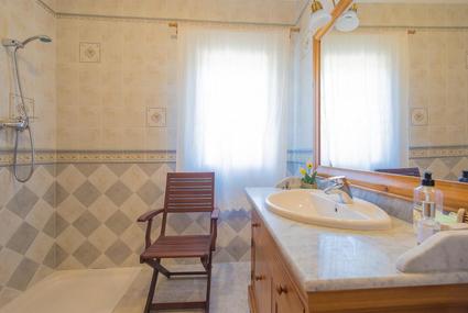 Exterior: Here you can enjoy the large property, with a covered terrace overlooking the pool. The square pool is 9 x 4.5m big with roman steps and outside shower; the green area is ideal for sunbathing. Outside you will find to enjoy 4 deck chairs and a barbecue for outdoor eating. Parking for 3-4 cars on the plot.