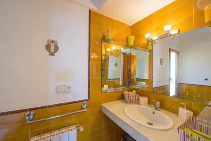 Main floor: (Access from the parking lot about 18 steps) Large living and dining room with TV and TDT / SAT, and air conditioning. American, open kitchen fully equipped with gas hob, dishwasher, oven, fridge-freezer, microwave, toaster and kitchen equipment. 1 double bedroom. 1 bedroom with double bed, air conditioning, dressing room and bathroom with washbasin and toilet. 1 bedroom with sofa bed (for 2 persons). A bathroom with shower, washbasin and toilet.
