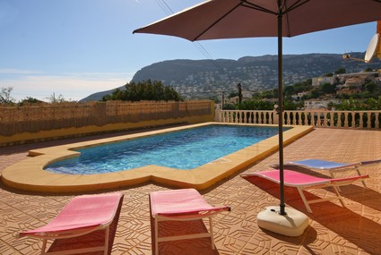 Beautiful summer villa with private pool in Calpe (Costa Blanca) for 6 people, with three bedrooms and two bathrooms on one floor.