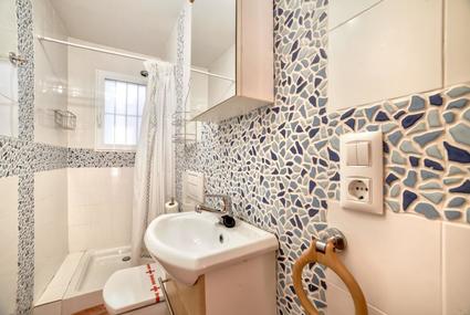 INTERIOR: Main floor: (access by 5 steps) living room with TV Sat / DTT, air conditioning and exit to terrace and pool. Fully equipped independent kitchen with dishwasher and ceramic hob, one bedroom with two single beds, air conditioning and bathroom with shower en suite, another bedroom with double bed and air conditioning, a third bedroom with 2 single beds and air conditioning and a separate bathroom with shower.
