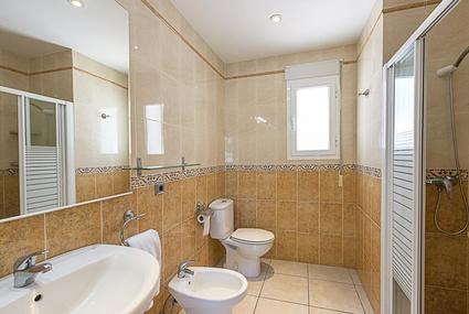 Inside:(access by 2 steps) this villa has a large living dining room with modern furniture, TV-flat screen, tdt and sat-tv and access to the covered terrace and to the pool area. Completely equipped kitchen with gas hob, dishwasher, refrigerator with freezer, oven, washing machine, microwave, coffee machine and other utensils for the kitchen. 1 bedroom with 2 single beds. 1 bathroom with shower, wc and washbasin. 1 bedroom with double bed. 1 large bedroom with double bed and bathroom en suite with shower, wc and washbasin.
