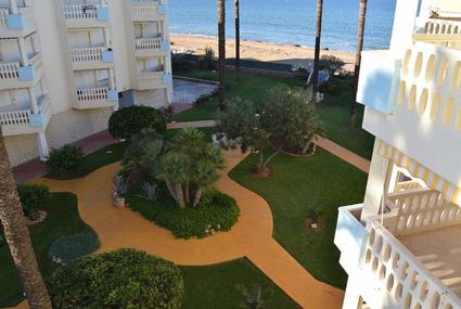 Third floor apartment with PRIVATE GARDEN located in one of the best areas of the city of Denia, in a residential area beachfront. The apartment is distributed, kitchen, two bedrooms, one bathroom, one toilette, large living room, two terrace ( one of them cristal covered) and large private garden of 100 square meters to enjoy all year round overlooking the beach. It is a very quiet, beautiful community garden with a wonderful communal pool with direct access to the beach and covered garage exit.