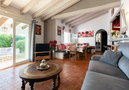 - Spacious living/dining room with satellite TV, fireplace and access to the pool terrace