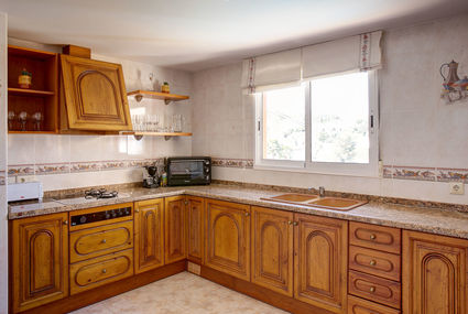 Cosy, comfortable villa "Villa Belvedere". In the resort 2 km from the centre of Dénia, in a quiet, sunny position, 2 km from the sea, 2 km from the beach. Private: beautiful, well-kept garden (fenced) with lawn and flowers, natural garden, swimming pool (5 x 10 m, depth 90 - 200 cm, 01.01.-31.12.). In the house: central heating system, air conditioning, washing machine. Roofed, parking (for 2 cars) on the premises. Supermarket 1.4 km, restaurant, café 850 m, sandy beach 2 km, diving center 2.5 km. Sports harbour 2.5 km, marina 2.5 km, surf school 2.5 km, sailing school 2.5 km.Availability