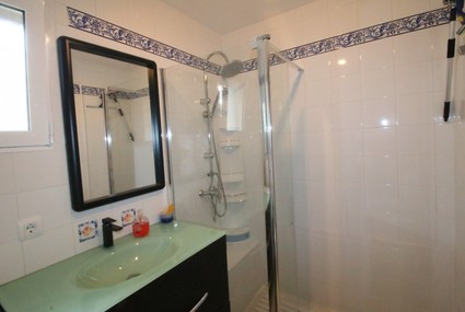 Semi detached house with 4.5m x3m private swimming pool with roman stairs and completely fenced plot. In the terrace we find the outdoor shower and a barbecue. The beach is just 550m away.