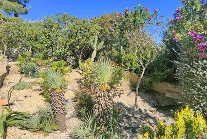 - beautiful Mediterranean planting with citrus trees and other typical plants