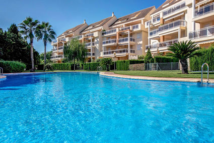 Apartment block "Residencial Los Sauces". 4.5 km from the centre of Denia, 500 m from the sea. For shared use: large garden (fenced) with lawn and trees, swimming pool (01.01.-31.12.) with internal staircase. Children's pool, outdoor shower, children's playground (swing, sandbox). In the house: lift, air conditioning. Parking space n 2A, communal covered parking space n 2A. Supermarket, restaurant, bar, bus stop 300 m, sandy beach 500 m. Sports harbour 4 km, marina 4 km.