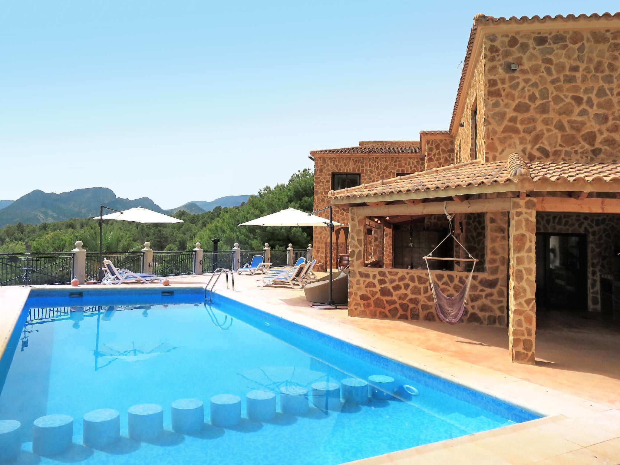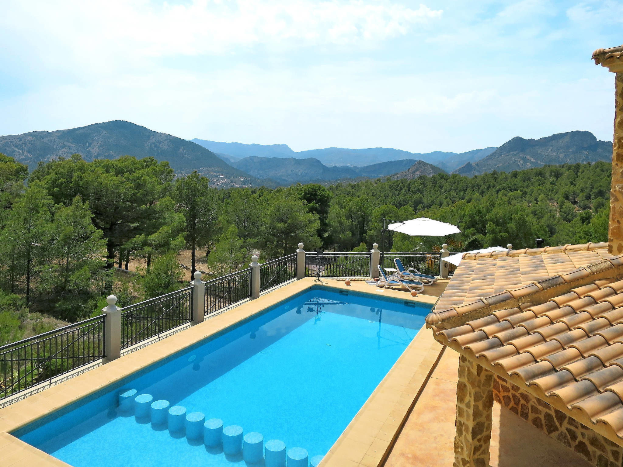 Finestrat 9 km from Villajoyosa: Beautiful villa "Mucho" in 2022, surrounded by fields. In the district of Partida de Ramal de Loix 1 km from the centre of Finestrat, 8 km from the centre of Villajoyosa, 43 km from the centre of Alicante, on a slope, traffic calmed area, 8 km from the sea. Private: property 5'000 m2 (fenced), terraced garden wildlife garden and trees, swimming pool (12 x 4 m, depth 40 - 190 cm, seasonal availability: 01.Jan.-31.Dec.). Outdoor shower. 1 km long steep motor access. Parking (for 4 cars) on the premises. Shop 1 km, supermarket 1 km, sandy beach "Playa Finestrat Benidorm" 8 km. Golf course (18 hole) 8 km. Nearby attractions: Situación ideal para hacer senderismo, y ciclismo. Please note: car recommended. The owner does not accept any youth groups.Availability