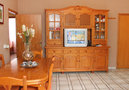 Bright, simple and practical furnishings: living/dining room 16 m2 with open-hearth fireplace and TV. Exit to the terrace. 2 rooms 8 m2, each room with 1 french bed (135 cm, length 190 cm). 1 room 6 m2 with 1 bed (90 cm, length 190 cm). Kitchen (4 hot plates, oven, dishwasher, toaster, water boiler, microwave, freezer, electric coffee machine). Exit to the patio, to the swimming pool. Bath/bidet/WC, sep. WC. Terrace 10 m2, patio 200 m2. Terrace furniture, barbecue. View of the swimming pool and the garden. Facilities: washing machine. Internet (WiFi, free). Reserved parking. Please note: 2 pets/ dogs allowed. TV only ES. AT440459A